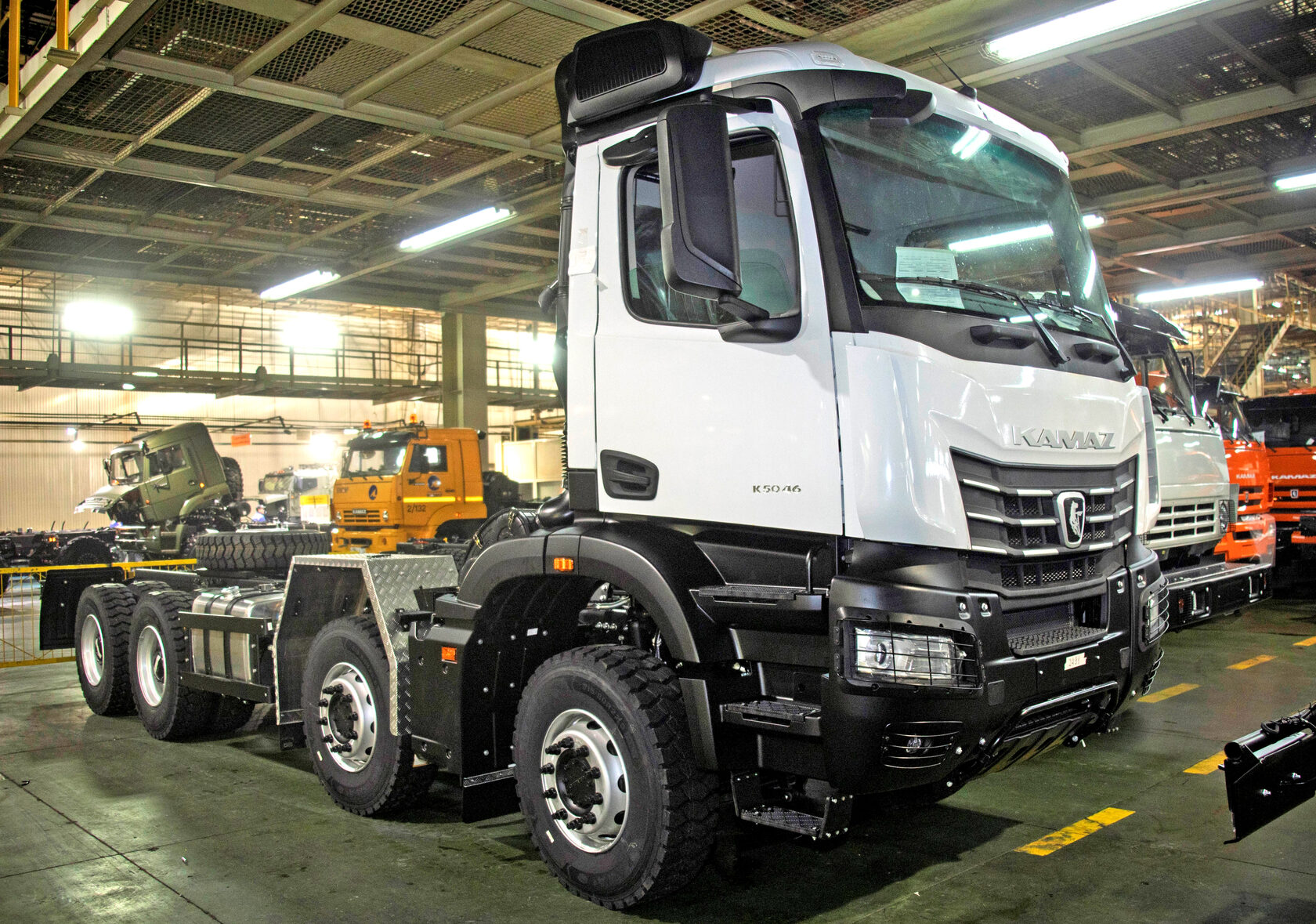 На главном сборочном конвейере «КАМАЗа» собрали новую модификацию автомобиля поколения К5 – КАМАЗ-65951 с колёсной формулой 8х4, предназначенную для размещения на шасси бетоносмесителя. Главное отличие модификации шасси для автобетоносмесителя от базовой комплектации самосвала КАМАЗ-65951 – наличие механизма отбора мощности от двигателя, который обеспечивает привод смесительного барабана. У новинки увеличенный задний свес рамы, позволяющий разместить «миксер» объёмом 12 м3, а также шины, рассчитанные на высокие нагрузки. Автомобиль оснащён двигателем КАМАЗ Р6 мощностью 460 л.с., грузоподъёмность шасси составляет 35 т.