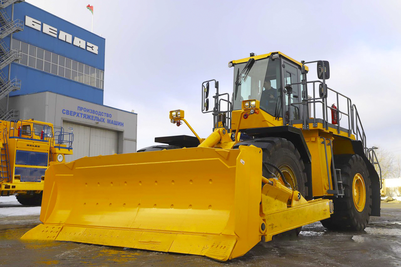 В семействе спецтехники БЕЛАЗ дебютировал один из самых мощных представителей – новый карьерный колёсный бульдозер БЕЛАЗ-78542. Машина характеризуется массой 50 т, высоким тяговым усилием в 350 кН и оснащена 10-кубовым отвалом.