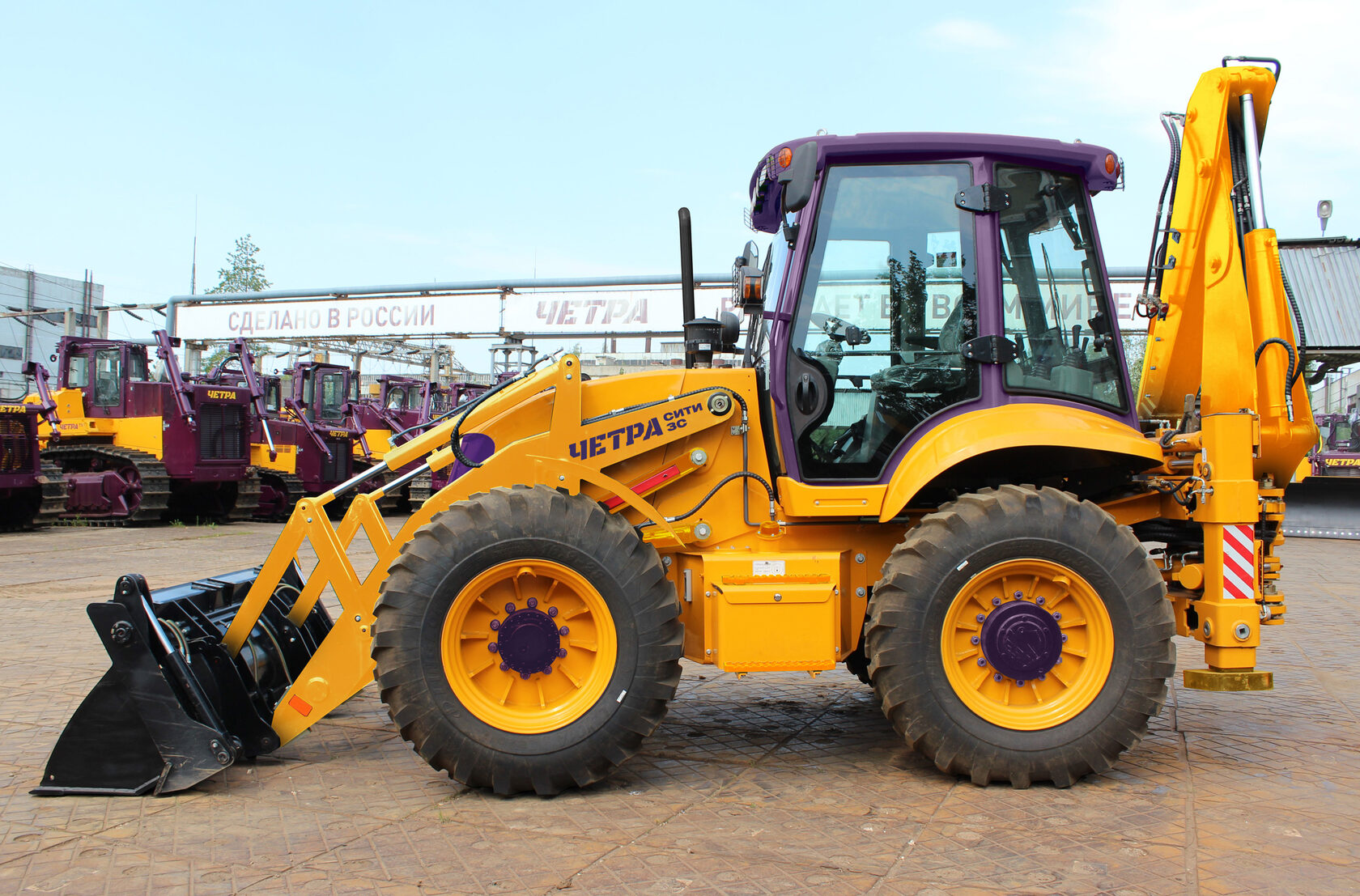 Линейка экскаваторов-погрузчиков ЧЕТРА СИТИ включает две модификации: 3С – с равноразмерными колесами и функцией «крабового хода» и 3М – с разноразмерными колесами.